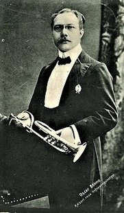 Böhme studied with his father Heinrich Wilhelm Böhme, who was a trumpeter and cornet player in the miners' band of the Freiherrlich von Burgker coal mines. From 1885 to 1894 Oskar Böhme toured Europe as a soloist. During this time, he also studied composition at the Hamburg Conservatory and in Berlin. He was thereafter a member of the opera orchestra in Budapest together with his brother Willi until 1896. He returned to Germany and studied music theory, composition and piano in Leipzig. In 1898 Oskar Böhme went to St. Petersburg, where he was accepted as a cornet player in the orchestra of the Mariinsky Theater, the Imperial Opera, in September 1902. Böhme played in this orchestra for 19 years, from 1916 as a soloist. Shortly after the beginning of the war, he became an honorary citizen of St. Petersburg. The Bolsheviks' seizure of power forced him to take his leave of the Mariinsky Theatre. After 1921 he taught at the Rimsky-Korsakov School of Music in Leningrad. From 1930 to 1934, he was a member of the orchestra of the Grand Drama Theater, which later became the Gorky Theater. His most important works are the Trumpet Concerto Op.18 in E minor from 1899 (the only authentic trumpet concerto of the Romantic era) and the Sextet in Eb minor for brass ensemble ("Trumpet Sextet") Op.30 from 1907. Böhme played a Courtois Cornet á Pistons, many of his works are published by Julius Zimmermann in St. Petersburg.
